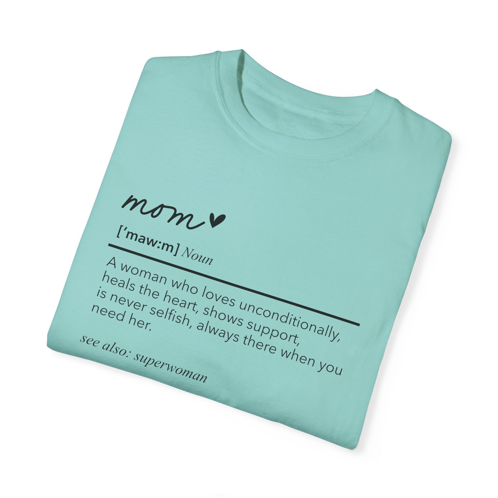 So whether you're celebrating your own mom, a mother figure, or a mama-to-be, our "Mom" Comfort Colors T-Shirt is the perfect way to show your appreciation and gratitude for the remarkable women who hold a special place in your heart. Order yours today and let mom know just how much she means to you!