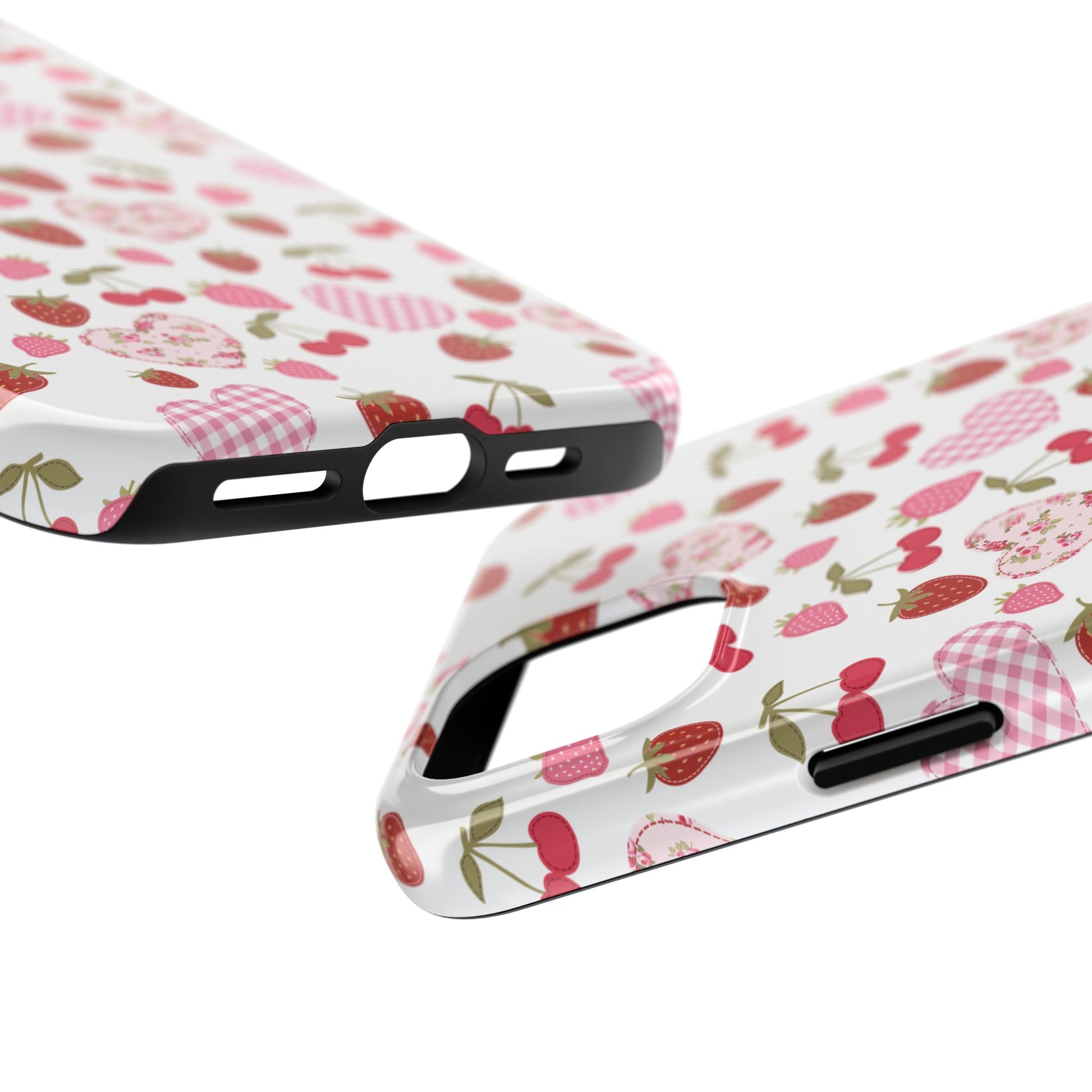 Hearts and Berries Phone Case, Coquette Design Case, Durable Phone Case, Tough Phone Cases