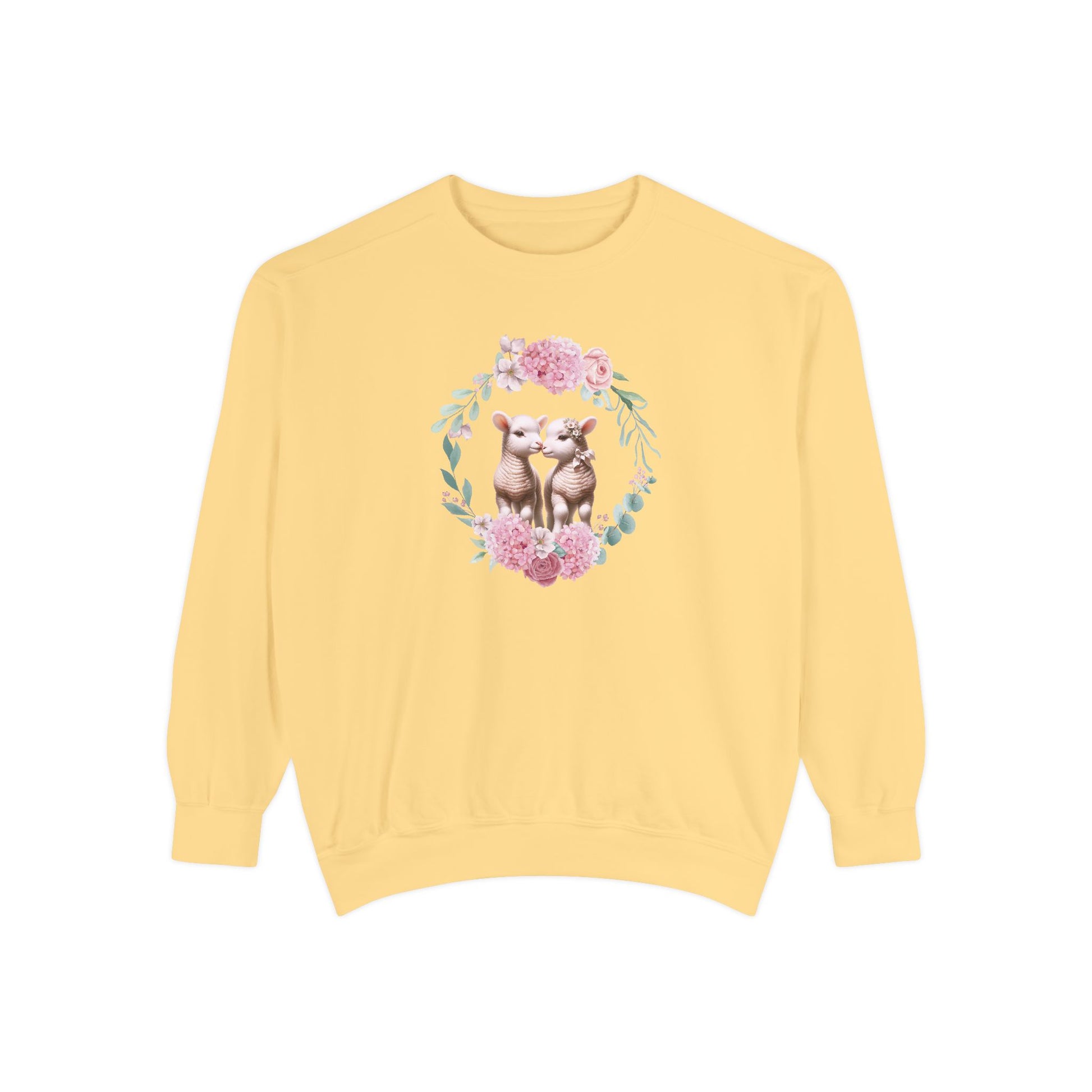 Wrap yourself in the cozy embrace of the Lamby Snugglekins Sweatshirt! Designed with the softness of a lamb's wool, this cuddly sweatshirt features irresistibly plush fabric that makes every hug feel like a snuggle with your favorite fluffy friend. It's the perfect companion for chilly evenings and lazy Sundays – a wearable hug that keeps you snug!Details: