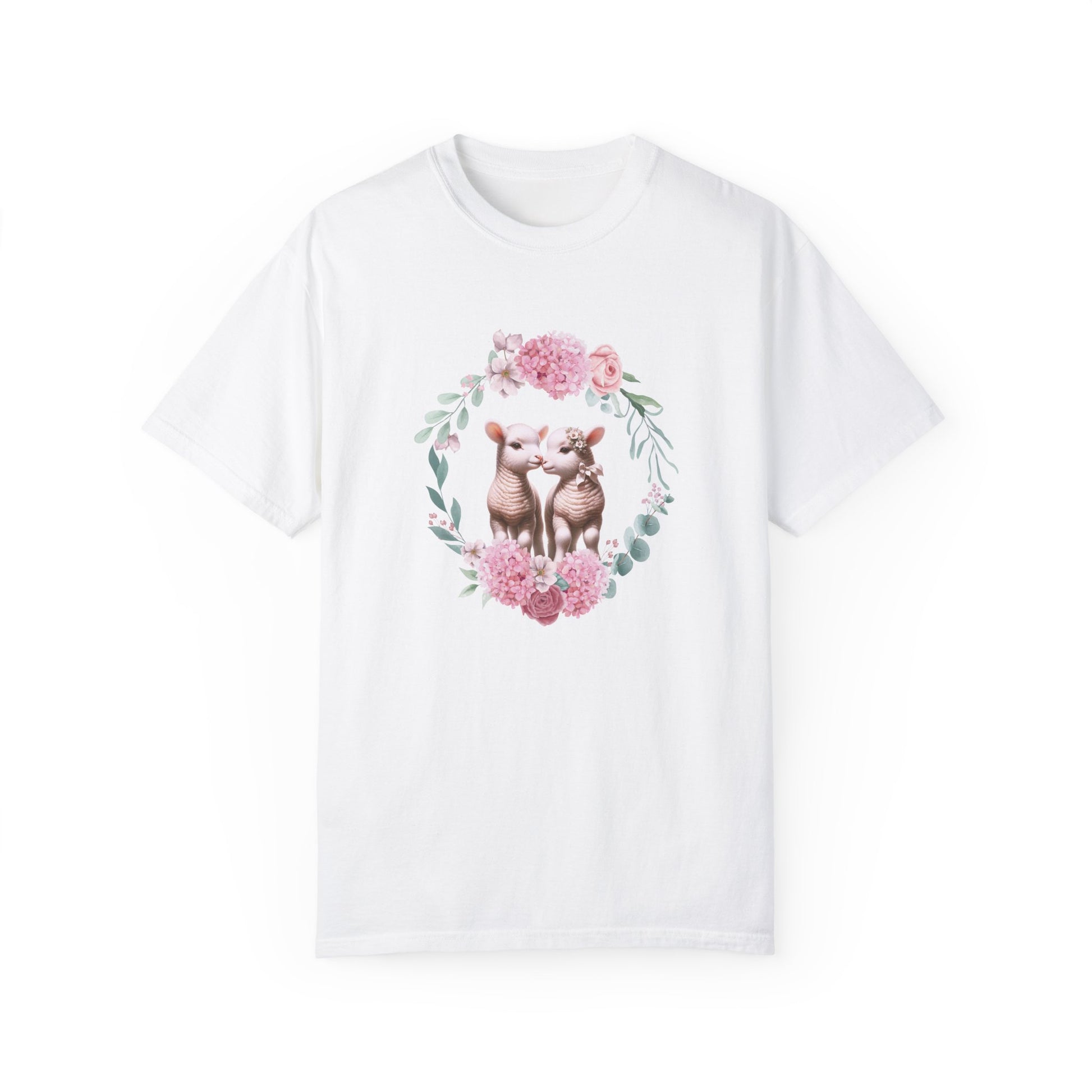 "Snuggle into sheer comfort with our LambyCuddle Kin T-shirt, where coziness meets cuteness in every stitch! Designed for the ultimate lamb-like embrace, this tee's soft, fluffy fabric will make you feel like you're getting a warm hug from your favorite cuddly lamb. Perfect for lounge days or casual bleats—erm, beats—around town, it'll soon be the 'baa-st' favorite in your wardrobe!"Details:
